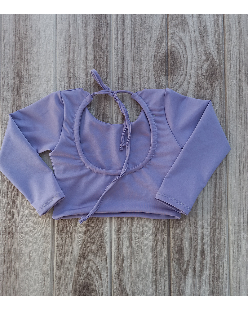 Top con manga larga, sin relleno, abierto en la espalda y es ajustable Con costuras invisibles y doble tela lo que no se marca y contiene muy bien.